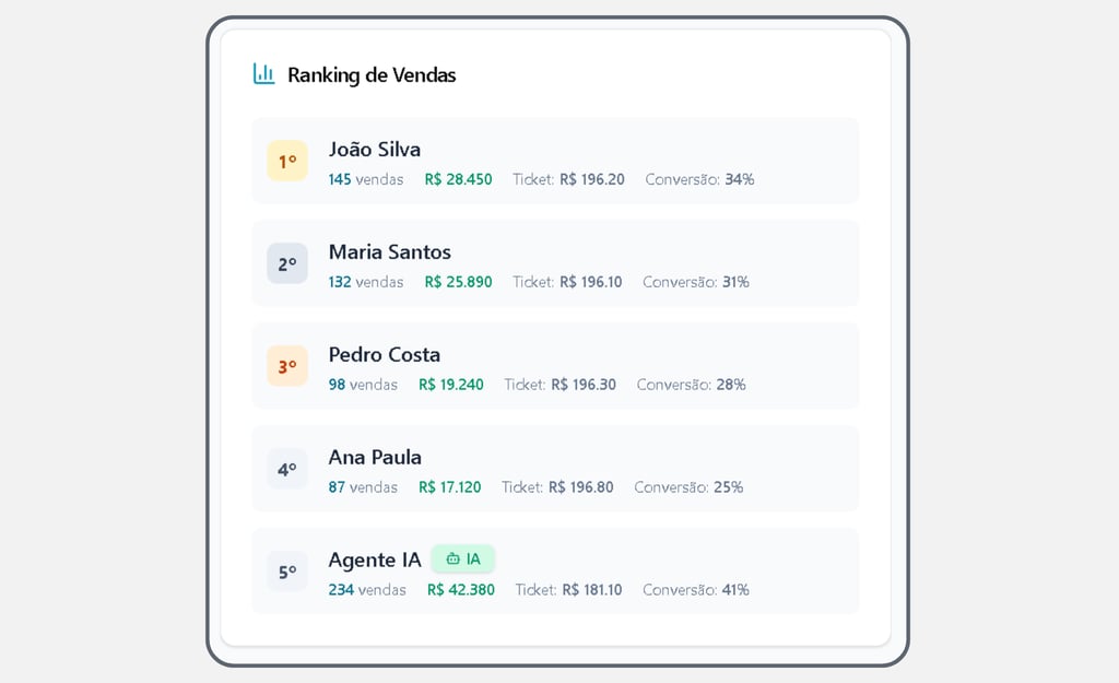 Quando necessário, a IA transfere o atendimento para um vendedor humano, para não travar ou prejudicar uma venda em situação pontual. Para clientes especiais ou casos específicos, é possível realizar essa transferência manualmente.