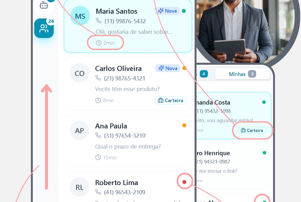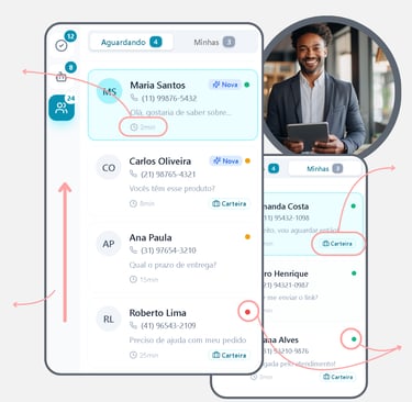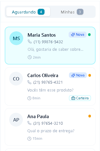 Visualize todas as conversas que a IA está conduzindo, saiba quem está sendo atendido, há quanto tempo e em qual etapa da venda cada cliente está