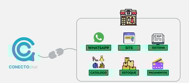 Integração com WhatsApp, e-Commerce, ChatGPT e Meios de Pagamento
